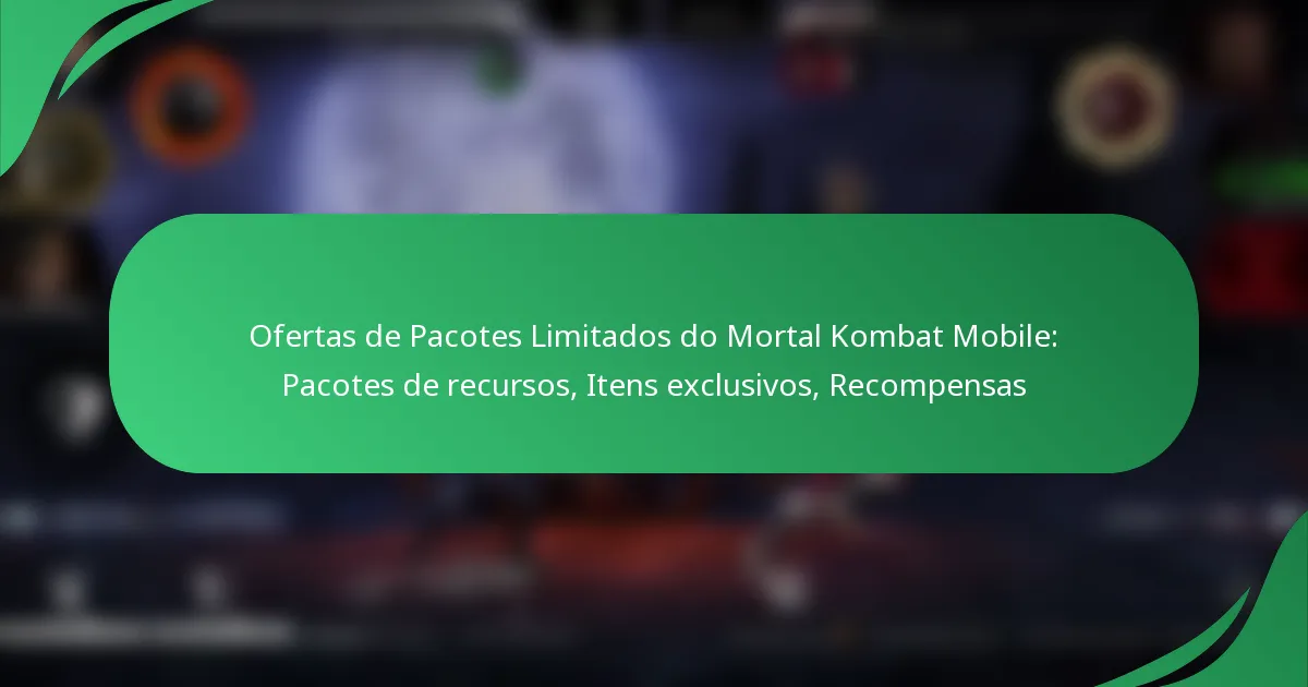 As Ofertas de Pacotes Limitados de Mortal Kombat Mobile apresentam aos jogadores recompensas exclusivas, incluindo fragmentos de personagens e itens únicos, disponíveis por um curto período. Estas pro...