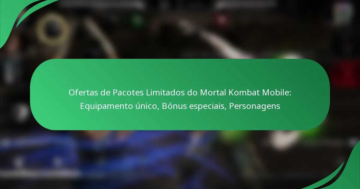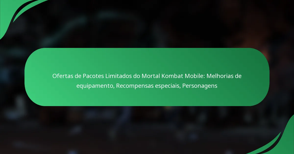 O Mortal Kombat Mobile está atualmente a oferecer pacotes de tempo limitado que apresentam equipamentos únicos, bónus especiais e personagens exclusivos. Estes pacotes são elaborados para melhorar a s...