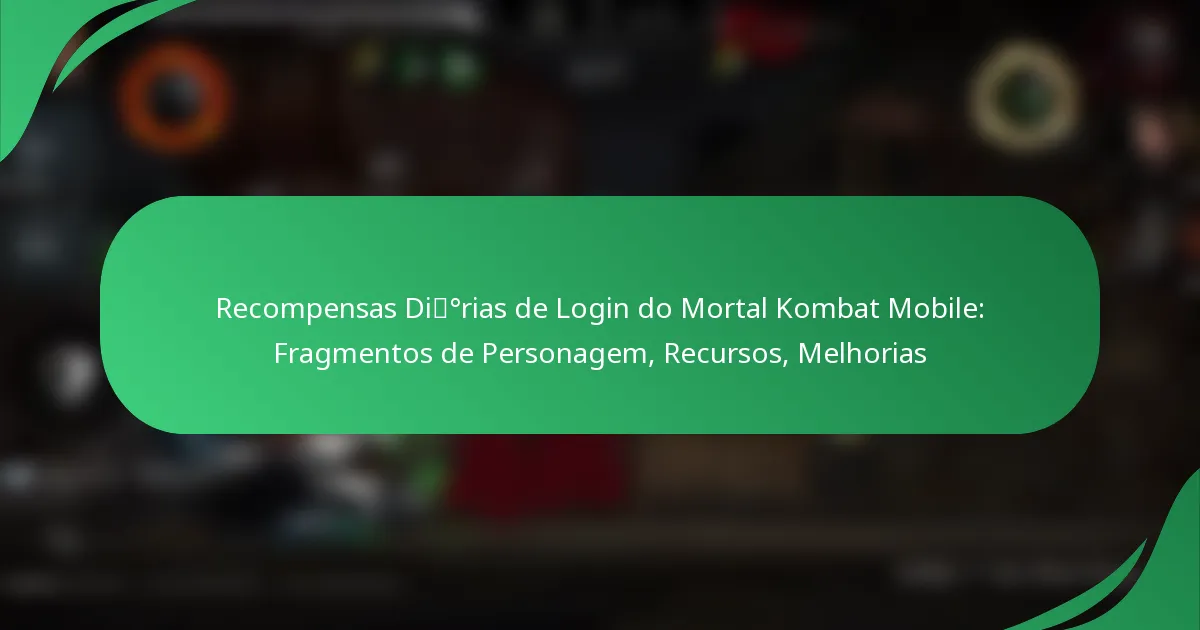 O Mortal Kombat Mobile oferece recompensas diárias de login que incentivam os jogadores a interagir com o jogo de forma consistente. Estas recompensas incluem tipicamente fragmentos de personagens, re...